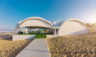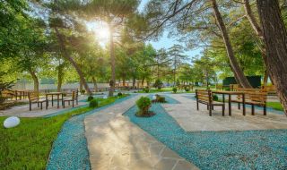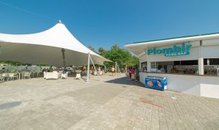Ближайший песчаный пляж изолирован от посторонних и укомплектован теневыми навесами и зонтами, лежаками и шезлонгами, туалетами и душевыми, детской площадкой. Он имеет большую территорию, которая регулярно чистится и охраняется. Спуск в море пологий и долгий, удобный для купания детей.